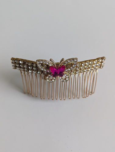 Gold-tone Pink & Clear Butterfly Rhinestone Hair Comb for Her, Elegant Rhinestone Hair Accessories, Summer Hair Combs, Wedding Hair Jewelry