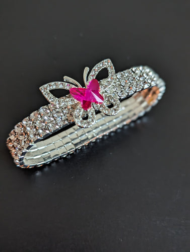 Hot Pink Butterfly Charm Bracelet, Silver Stretchy Bracelet for Her, Three Row Elastic Bracelet Bangle, Jewelry Gift