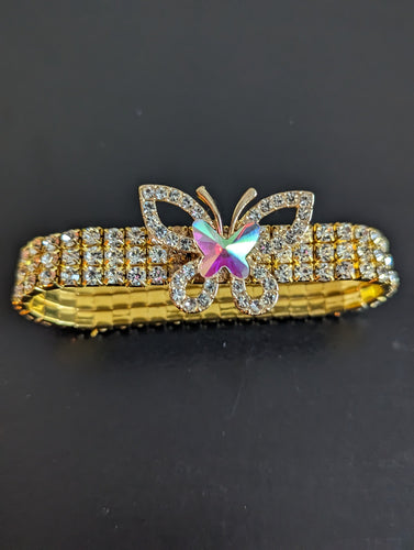 Iridescent Butterfly Charm Bracelet, Gold - Tone Stretchy Bracelet for Her, Three Row Elastic Bracelet Bangle, Butterfly Wrist Jewelry Gift