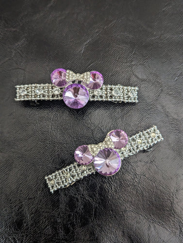 Lilac Crystal Mouse Ears Barrette Set for Little Girls, Children Rhinestone Hair Accessories