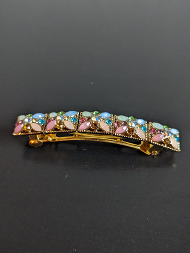 Multicolor Rhinestone Barrette, Pastel Colored Rhinestones,Goldstone Hair Barrette, Vintage Pastel Colored Hair Barrettes for Women