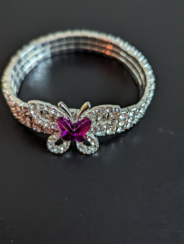 Purple Butterfly Charm Bracelet, Silver Stretchy Bracelet for Her, Three Row Elastic Bracelet, Jewelry Gift
