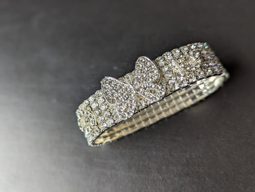 Silver Stretchy Bracelet, OSFA Silver Bracelet, Stretchy Bracelet, Sparkling Jewelry, Crystal Butterfly, Rhinestone Bracelet for Women