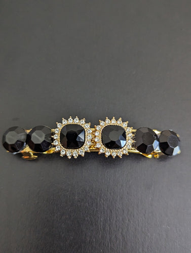 Sparkling 3 inch Black Rhinestone Barrette, Elegant Black Rhinestone Barrette, Black & Gold Rhinestone Hair Barrette for Women.