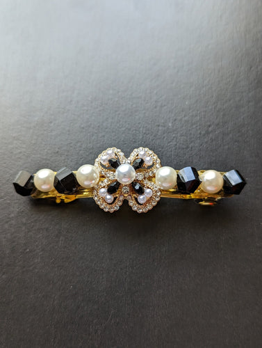 Vintage Style Barrette , Black and Pearl Barrettes for women, Retro Beaded Hair Barrettes, Gift for Mature Women
