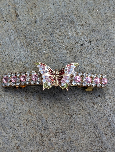 Vibrant Pink & Green Butterfly Barrettes, Barrettes for Butterfly Lovers, Rhinestone Barrettes