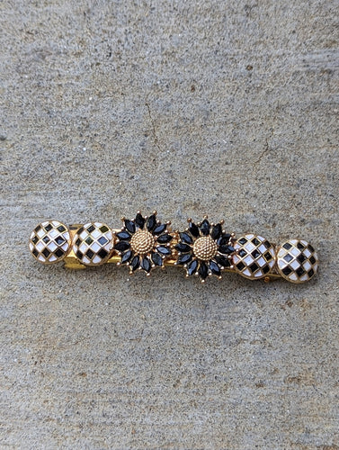 Vintage Style Black & White Hair Barrette, Checkered Hair Clips,