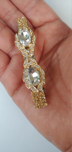 Clear Rhinestone Barrettes, Gold-Tone Clips, Wedding Hair Accessories, Holiday Hair Barrettes