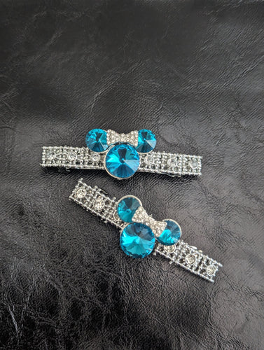 Crystal Mouse Ears Barrette Set, Teal Blue Rhinestone Barrettes for Little Girls
