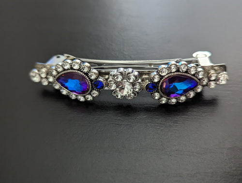 Elegant Blue & Silver Rhinestone Barrette, Navy Blue Gemstone Hair Accessories,