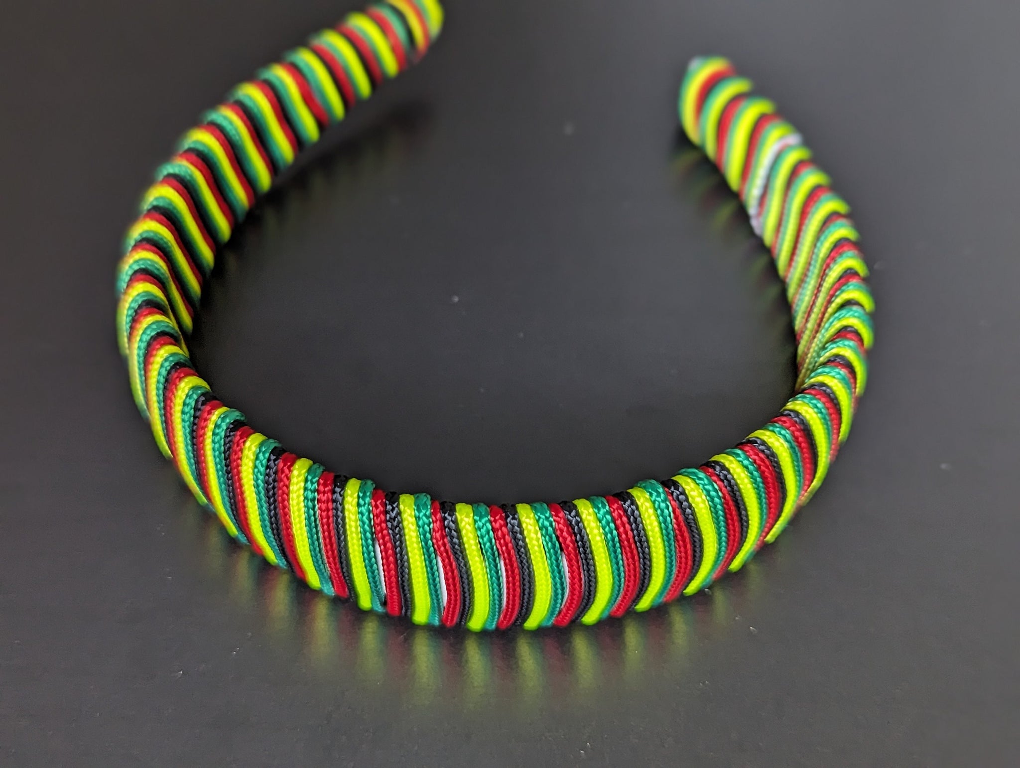 A multicolored paracord headband is a vibrant and versatile hair accessory that combines the durability and practicality of paracord with a playful and colorful design.
