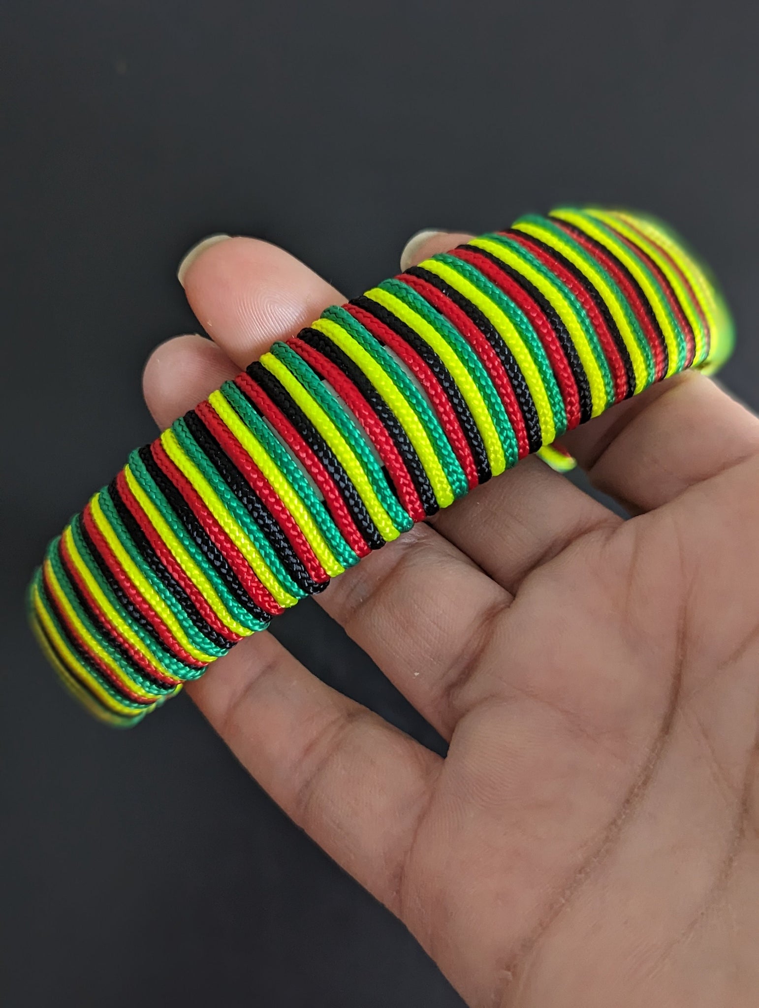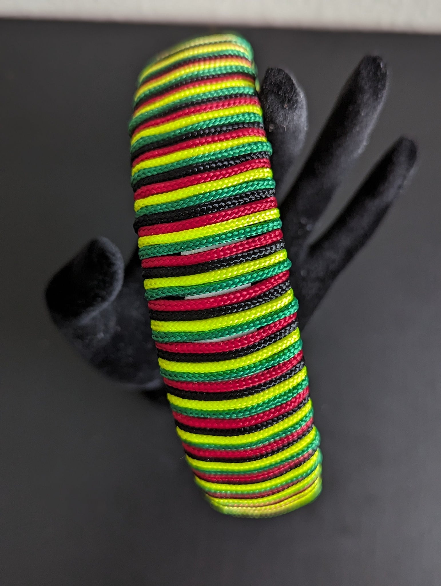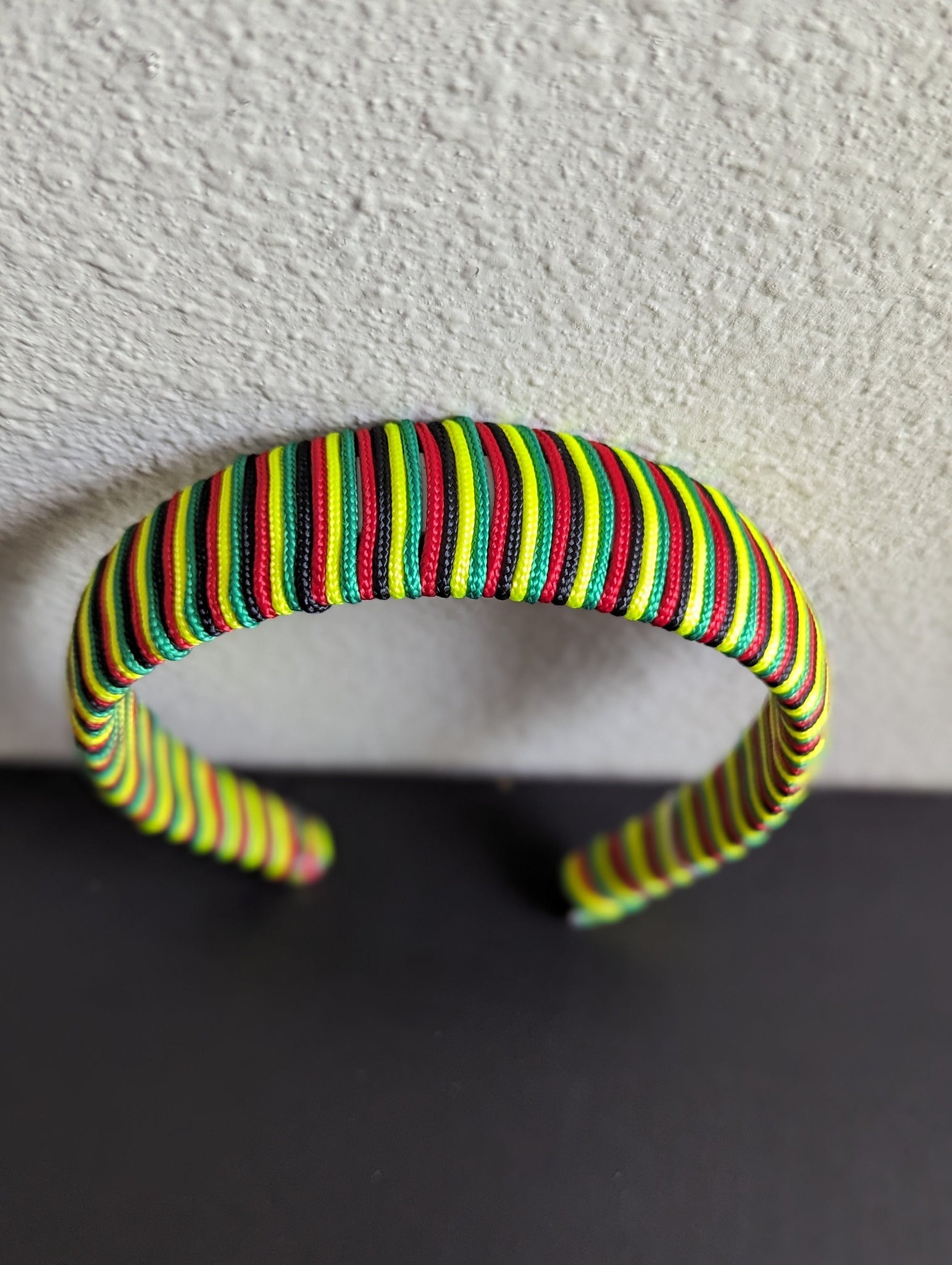Crafted from woven strands of strong and resilient paracord, this headband boasts a combination of different vibrant colors, creating a cheerful and eye-catching appearance. The intertwined colors offer a lively and dynamic look that can add a pop of color and style to any hairstyle.