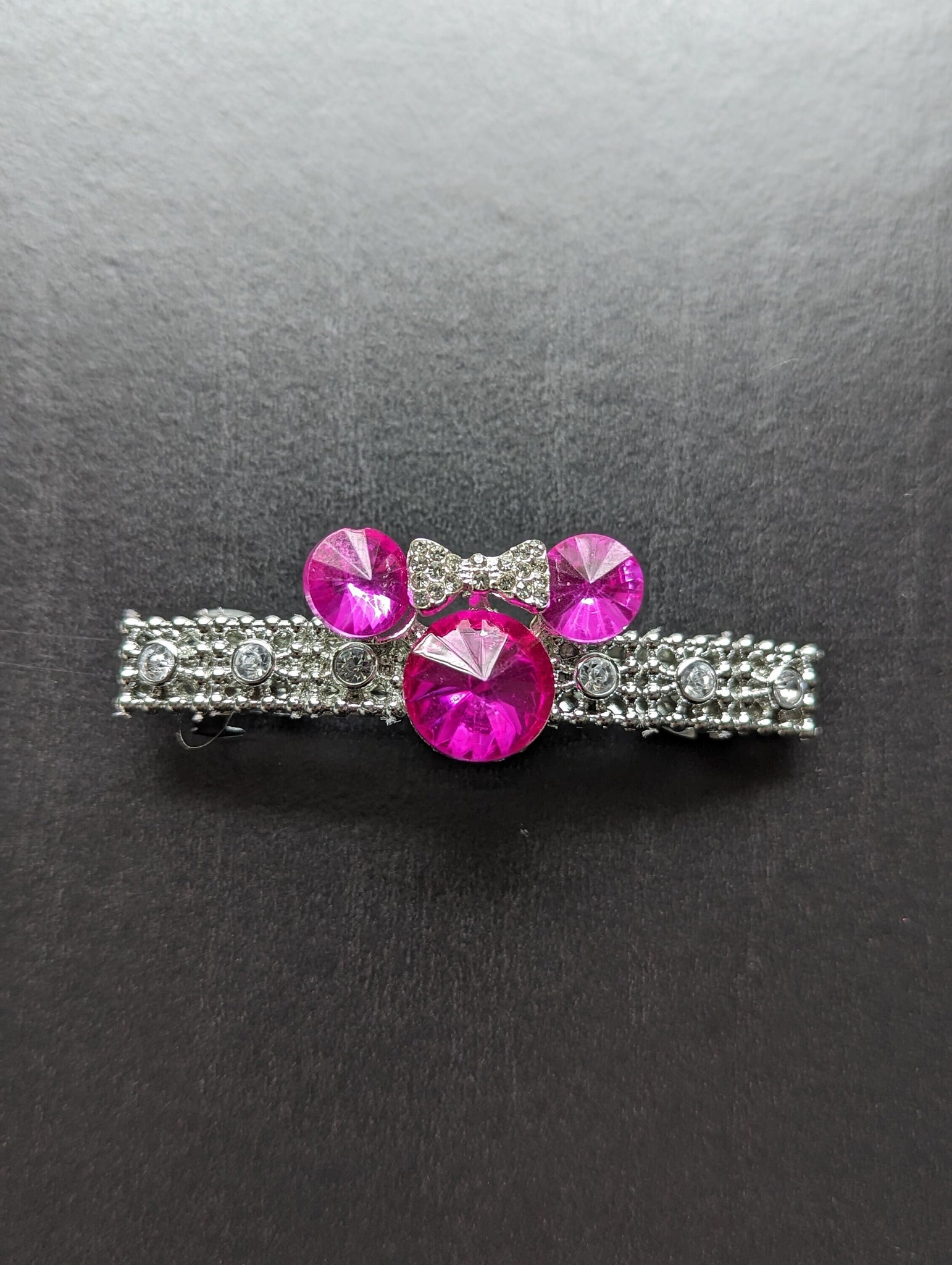 The Pink Mouse Ear Rhinestones Barrette with a Bejeweled Hair Bow is a charming and elegant hair accessory that effortlessly combines playful whimsy with a touch of sophistication. This delightful barrette features two adorable mouse ear-shaped embellishments in a soft and lovely pink hue, adorned with sparkling rhinestones that add a touch of magic and glamour.